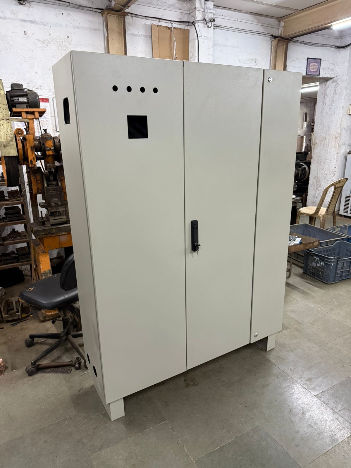 A durable and spacious three-door industrial panel designed for high-load electrical systems, offering superior organization, safety, and easy multi-section access.